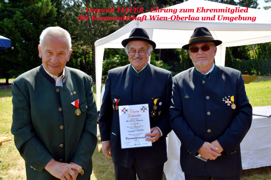 Im Zuge der Veranstaltung wurde unserem Mitglied Leopold TEIFER die Ehrenmitgliedschaft der Kameradschaft Wien – Oberlaa und Umgebung verliehen.